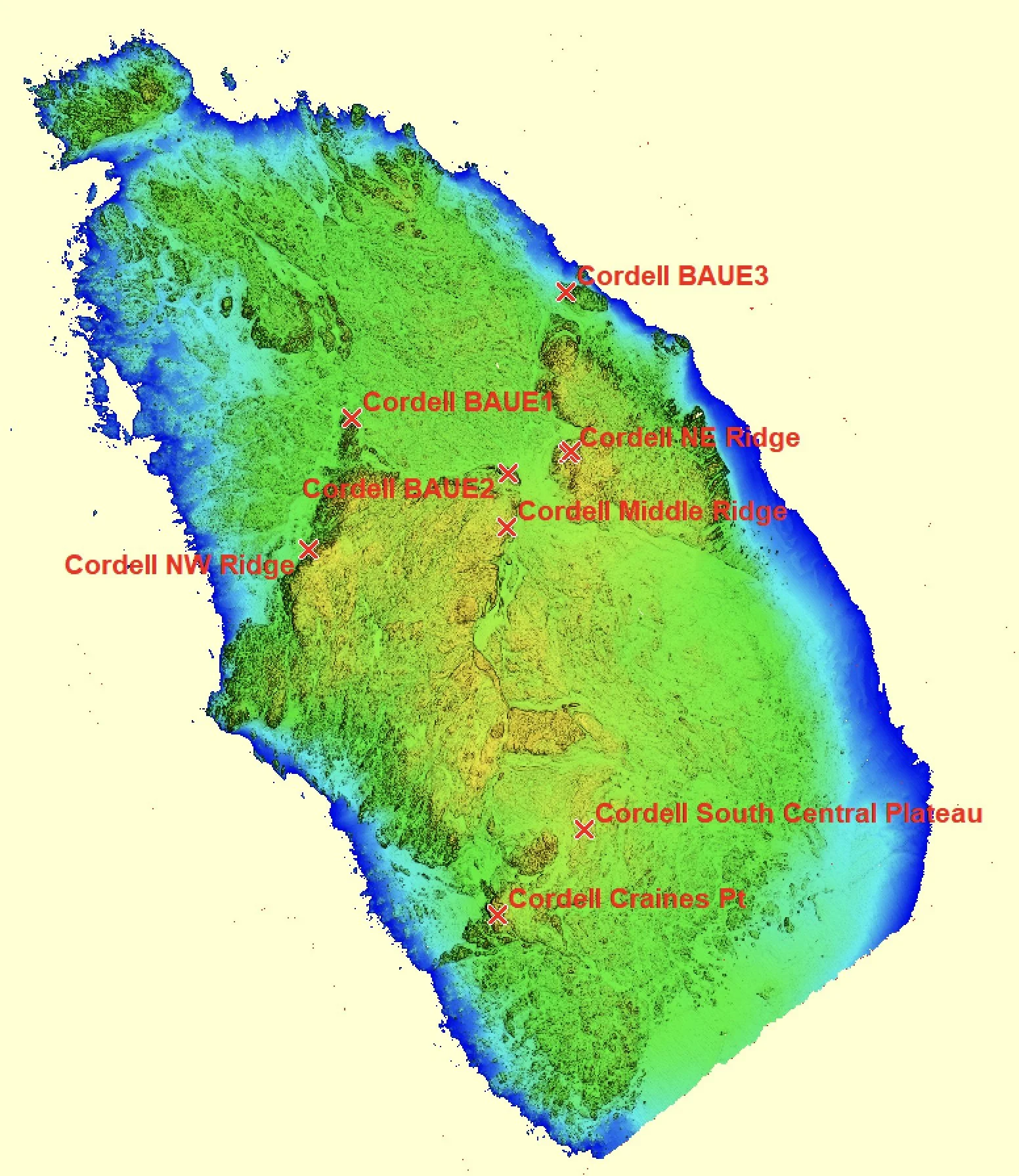 Bathymetric view of Cordell Bank